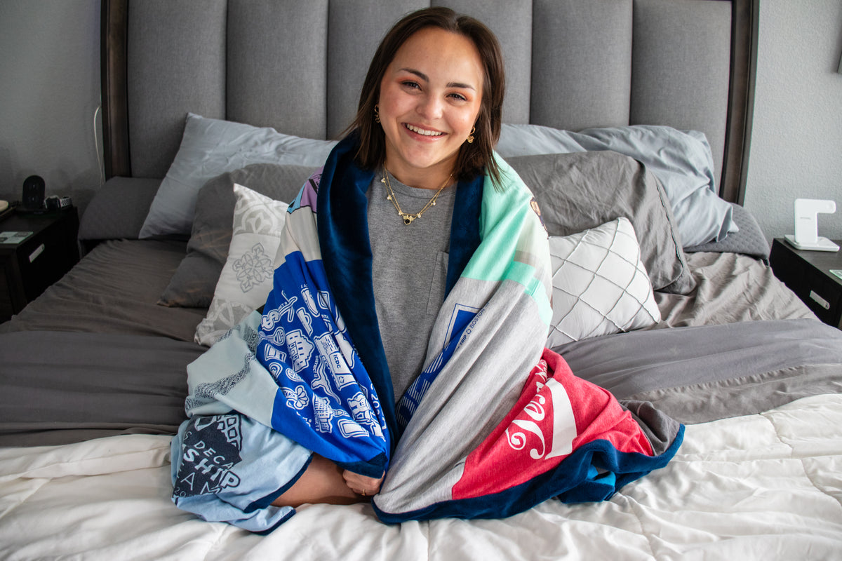 I’ve been saving my sons meaningful shirts throughout his life and wanted this shirt for his graduation. It’s everything I wanted and more. I couldn’t be happier!! I will be using her again for my daughter’s graduation blanket.
